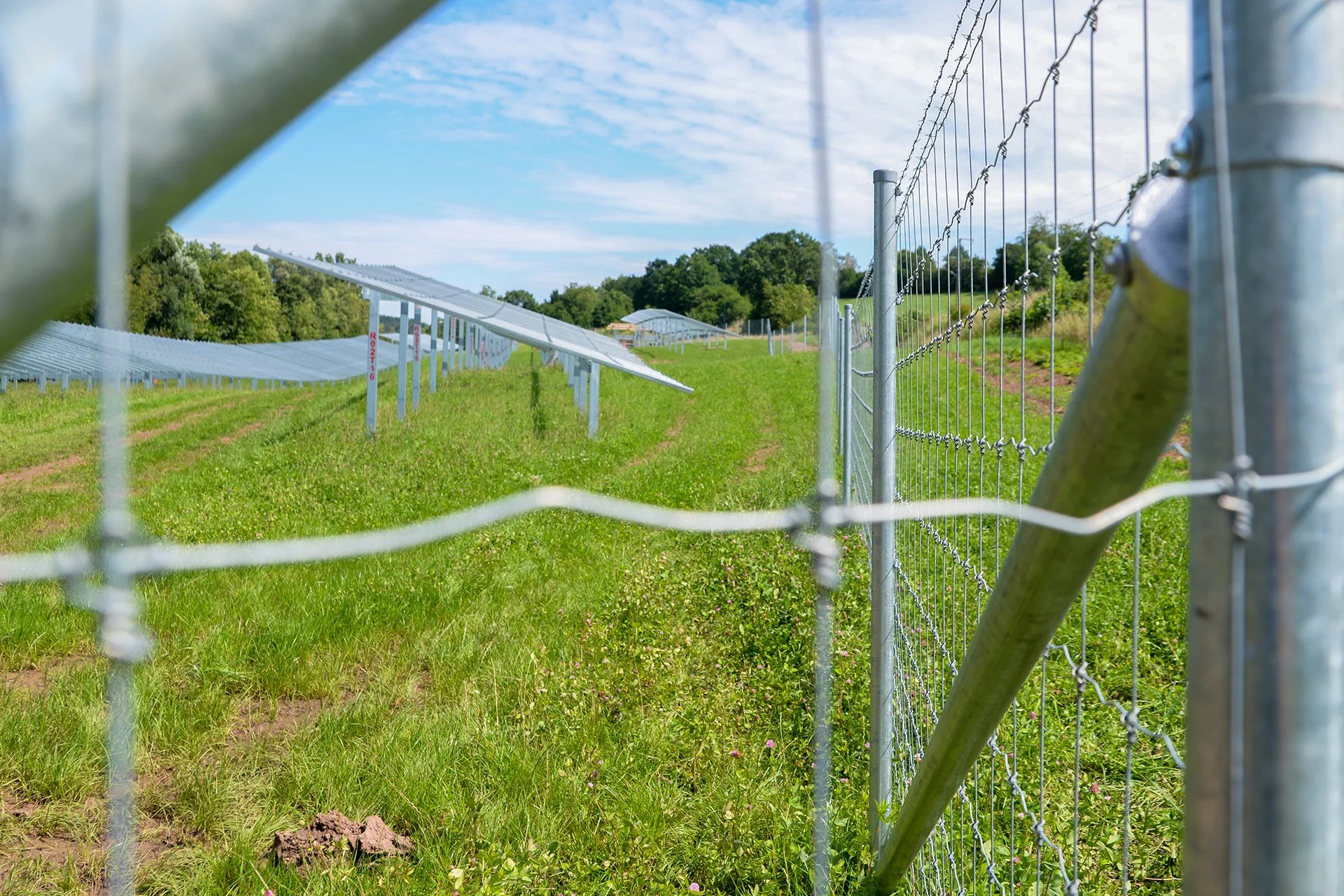 Unsere GPS-gesteuerte Ramme setzen wir nicht nur bei der Rammung von Stützelementen der Solarpanele ein, sondern sie garantiert auch bei der Platzierung der Zaunpfosten höchste Präzision bei hoher Geschwindigkeit.